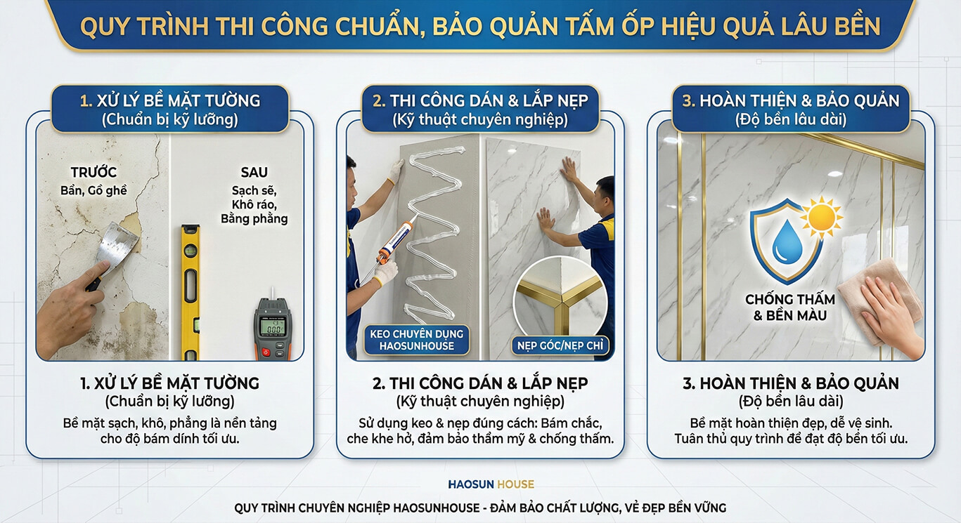 IV. Quy trình thi công chuẩn, bảo quản tấm ốp hiệu quả lâu bền
