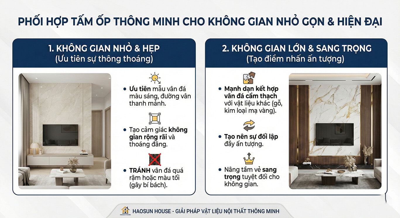 Phối hợp tấm ốp thông minh cho không gian nhỏ gọn, hiện đại