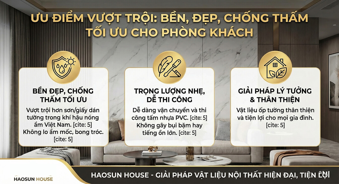 Bạn có thể tham khảo thêm So sánh tấm nhựa PVC vân đá và các vật liệu khác để có cái nhìn toàn diện hơn trước khi đưa ra quyết định cuối cùng cho phòng khách nhà mình.