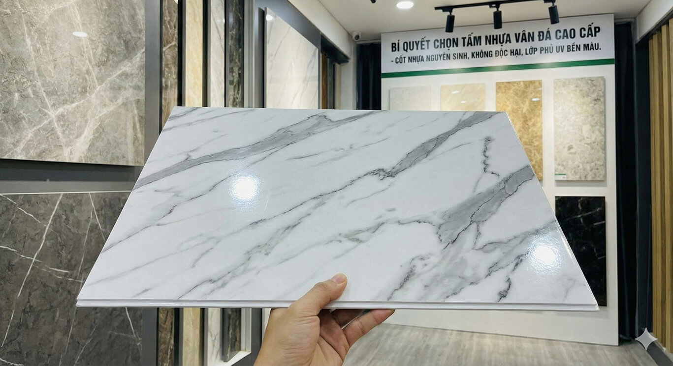 Để đảm bảo độ bền và an toàn, khi chọn mua, bạn cần ưu tiên tấm pvc vân đá cao cấp 2025 được làm từ cốt nhựa nguyên sinh PVC, không chứa các chất độc hại như formaldehyde.