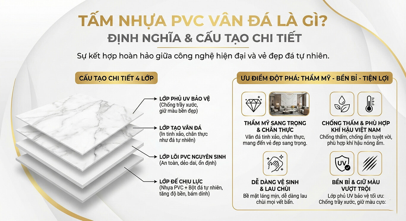 I. Tấm nhựa PVC vân đá là gì Định nghĩa & Cấu tạo chi tiết