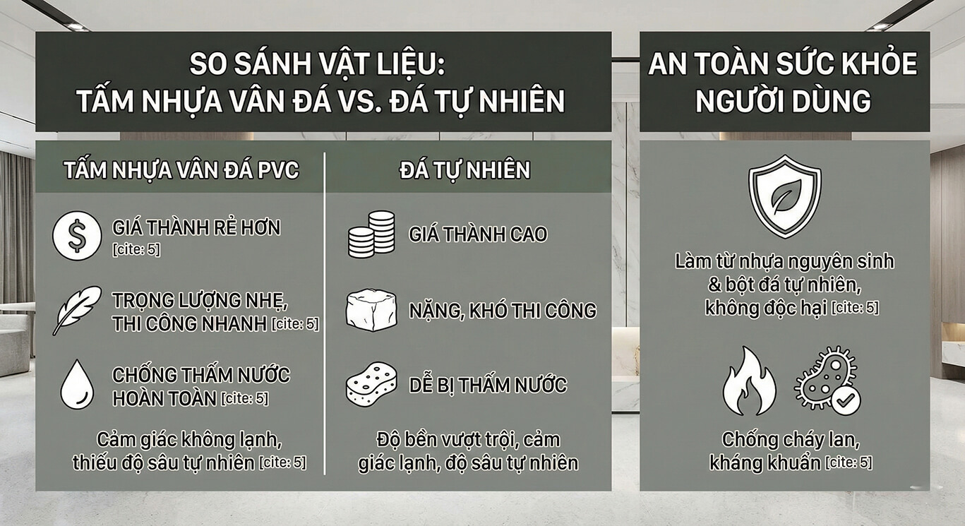 So sánh tấm nhựa vân đá và đá tự nhiên Chọn vật liệu tối ưu