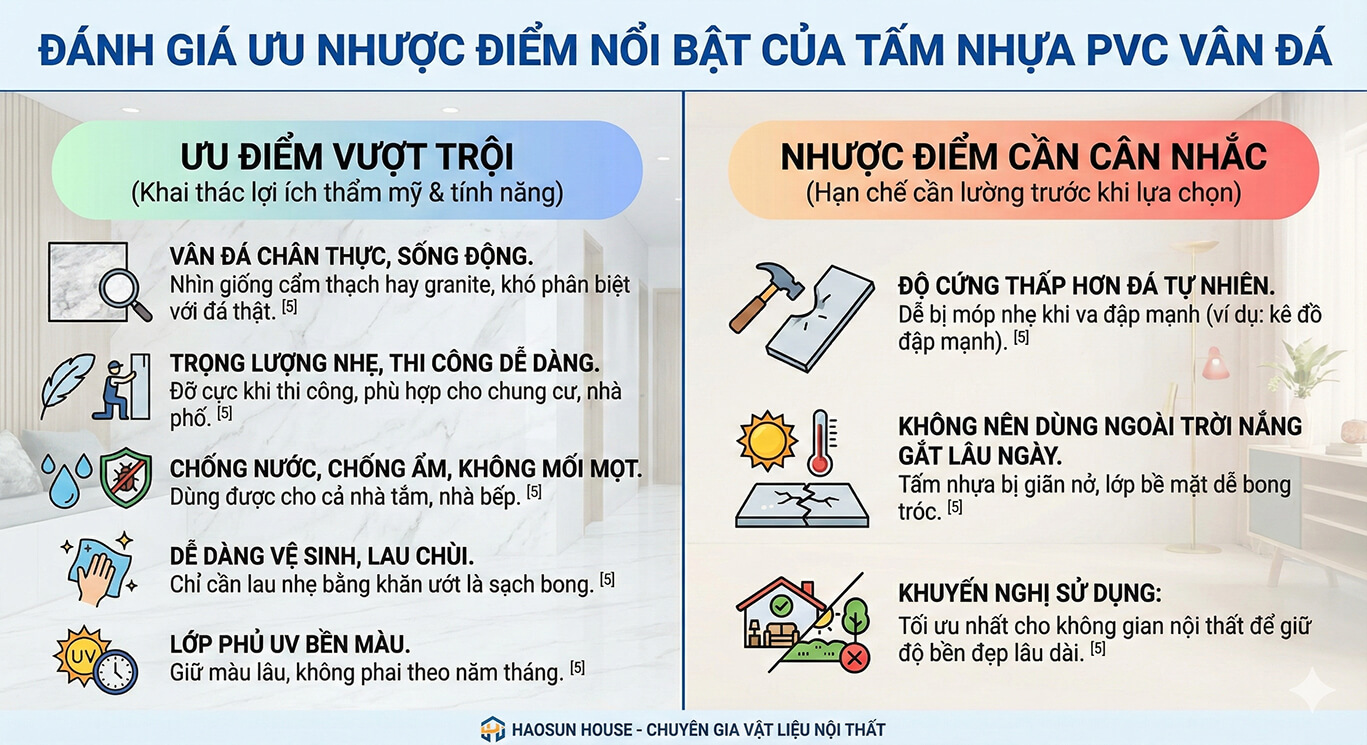 II. Đánh giá ưu nhược điểm nổi bật của tấm nhựa PVC vân đá