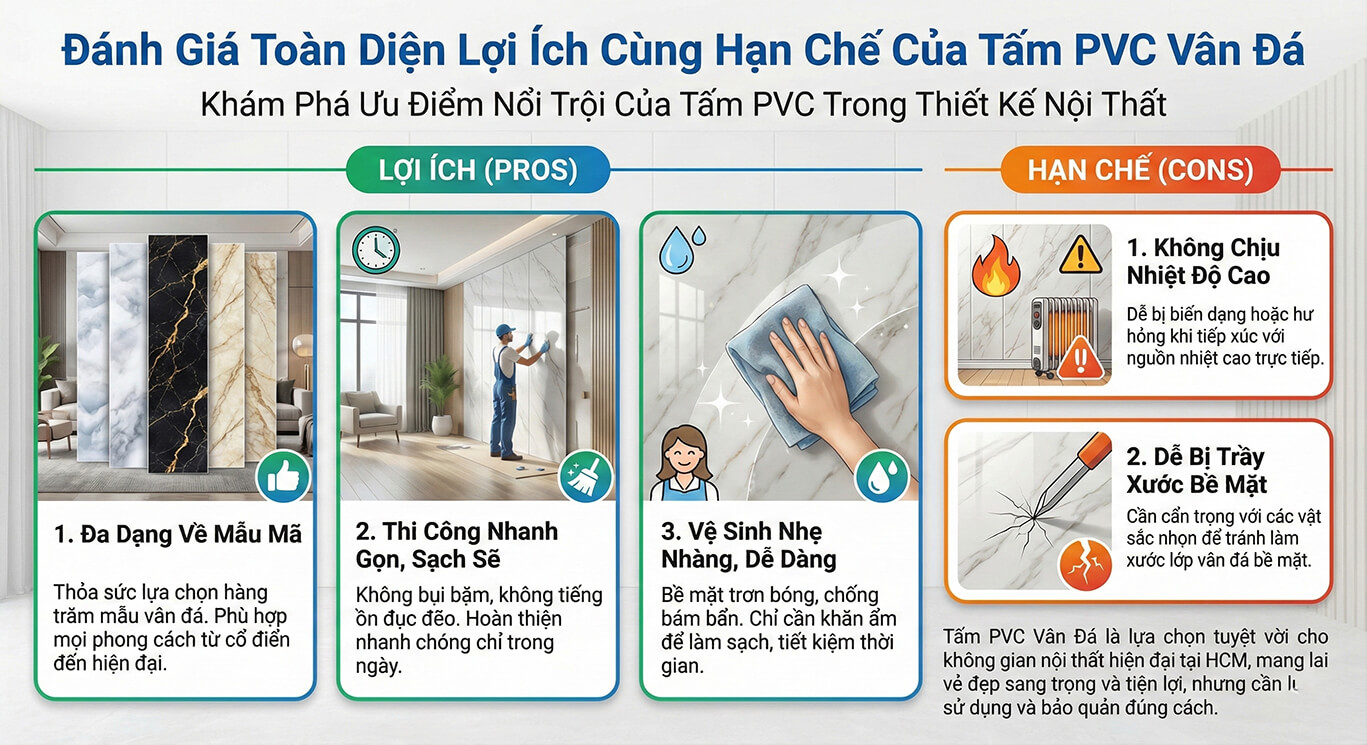 II. Đánh Giá Toàn Diện Lợi Ích Cùng Hạn Chế Của Tấm PVC Vân Đá
