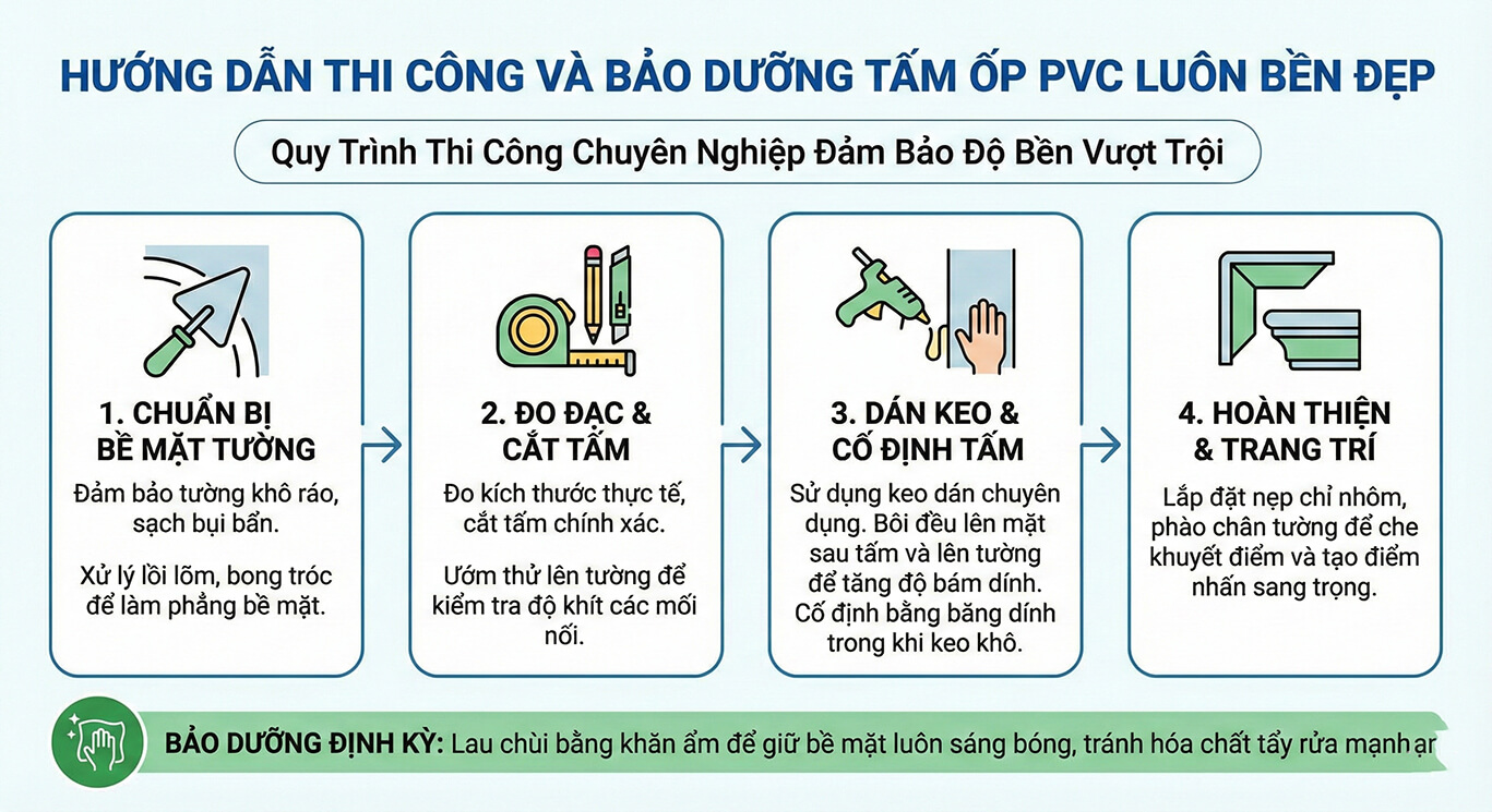 V. Hướng Dẫn Thi Công Và Bảo Dưỡng Tấm Ốp PVC Luôn Bền Đẹp