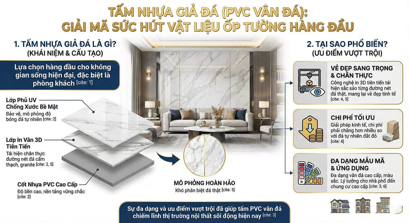 Bạn đang tìm kiếm giải pháp ốp tường phòng khách hiện đại, sang trọng cho năm 2026? Khám phá tấm nhựa giả đá phòng khách – vật liệu trang trí đột phá, giúp nâng tầm không gian sống với chi phí tiết kiệm và thi công nhanh chóng.