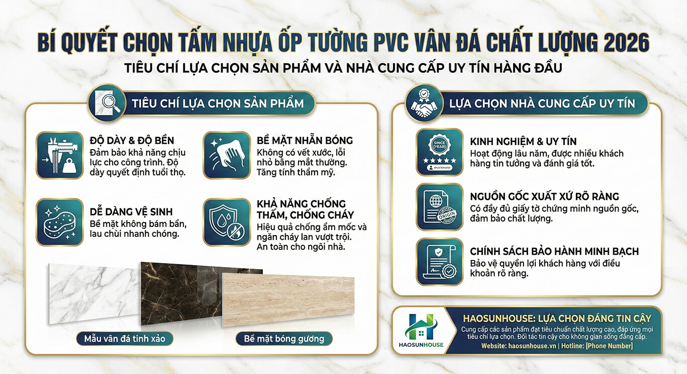 VI. Bí quyết chọn tấm nhựa ốp tường PVC vân đá chất lượng 2026