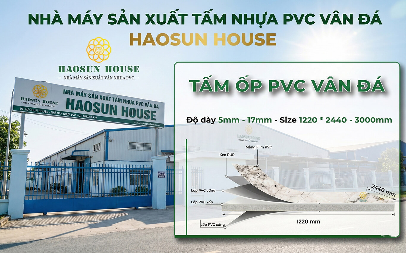 Haosunhouse cam kết cung cấp tấm nhựa ốp tường PVC vân đá chất lượng hàng đầu được sản xuất từ nguyên liệu chọn lọc và công nghệ tiên tiến nhất hiện nay. Chúng mình đảm bảo mỗi sản phẩm đều đáp ứng các tiêu chuẩn về độ bền thẩm mỹ và an toàn cho người sử dụng trong suốt vòng đời sản phẩm. Haosunhouse luôn cập nhật những mẫu mã mới nhất phù hợp với xu hướng kiến trúc 2026 đầy năng động.