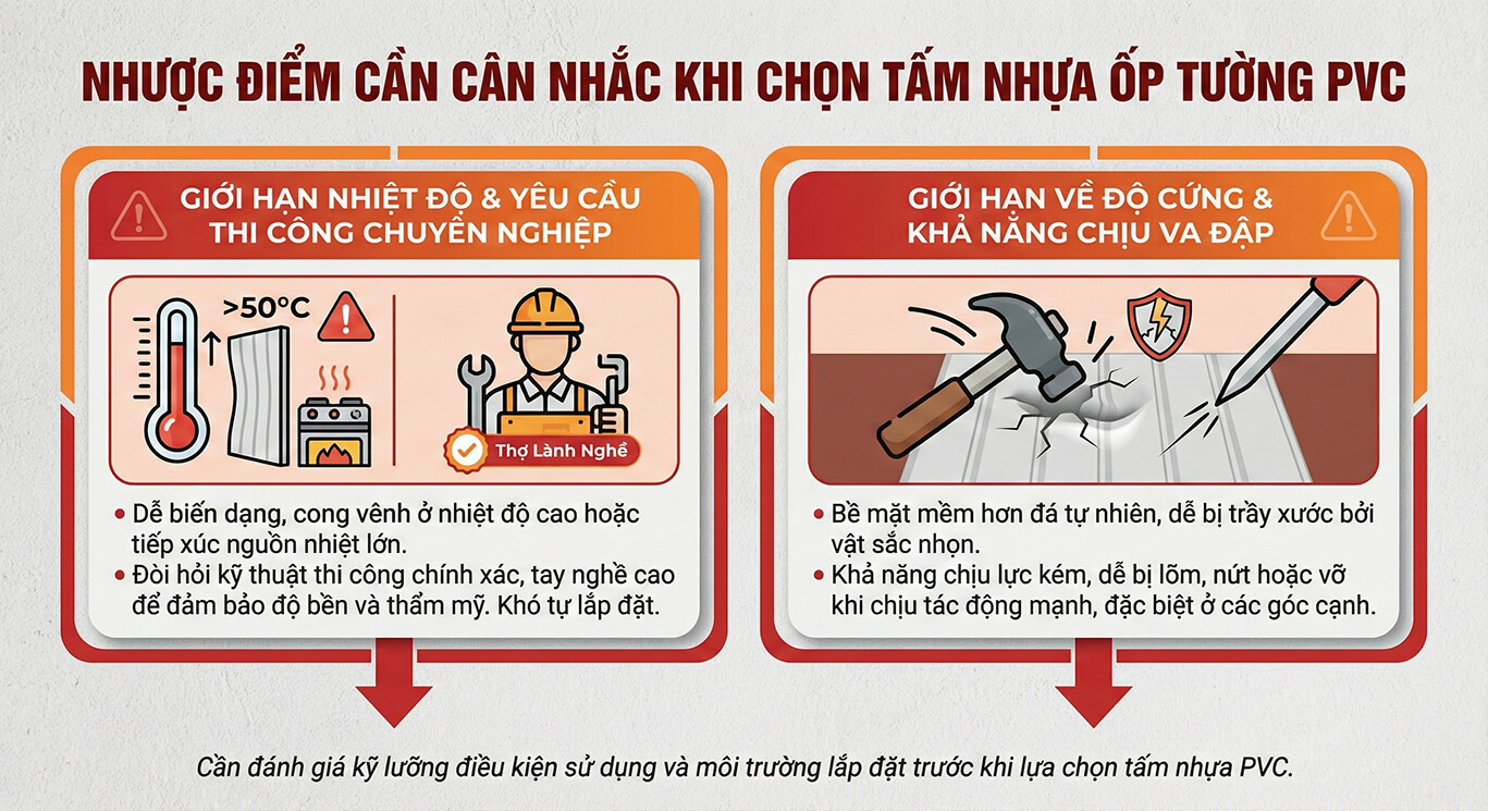 III. Nhược điểm cần cân nhắc khi chọn tấm nhựa ốp tường PVC