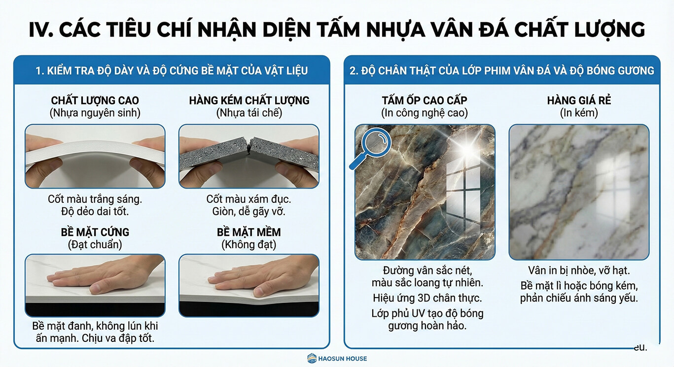 IV. Các tiêu chí nhận diện tấm nhựa vân đá chất lượng