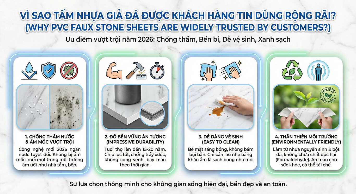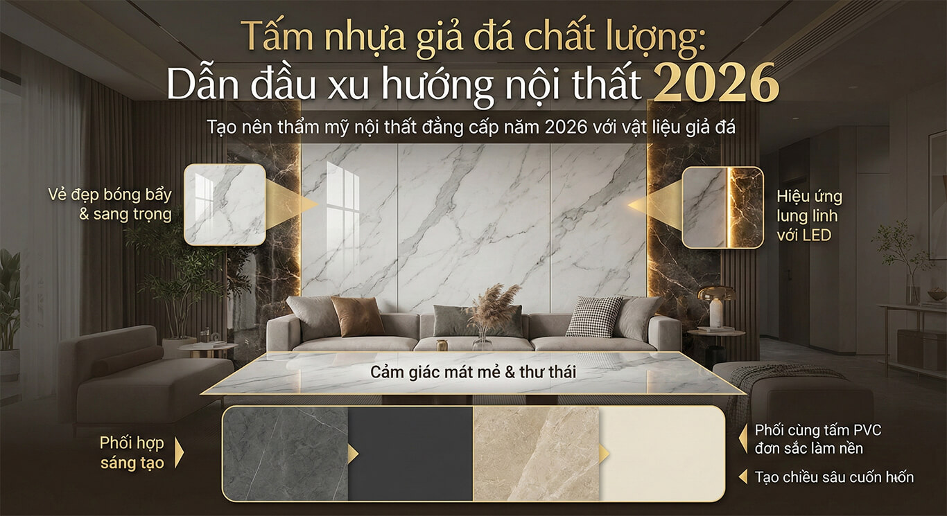V. Tấm nhựa giả đá chất lượng: Dẫn đầu xu hướng nội thất 2026
