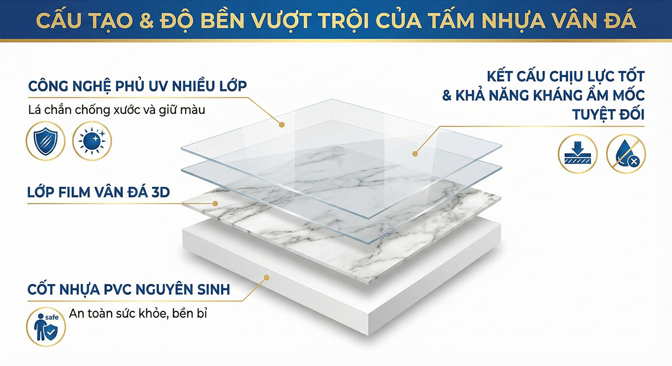 II. Cấu tạo và độ bền vượt trội của tấm nhựa vân đá