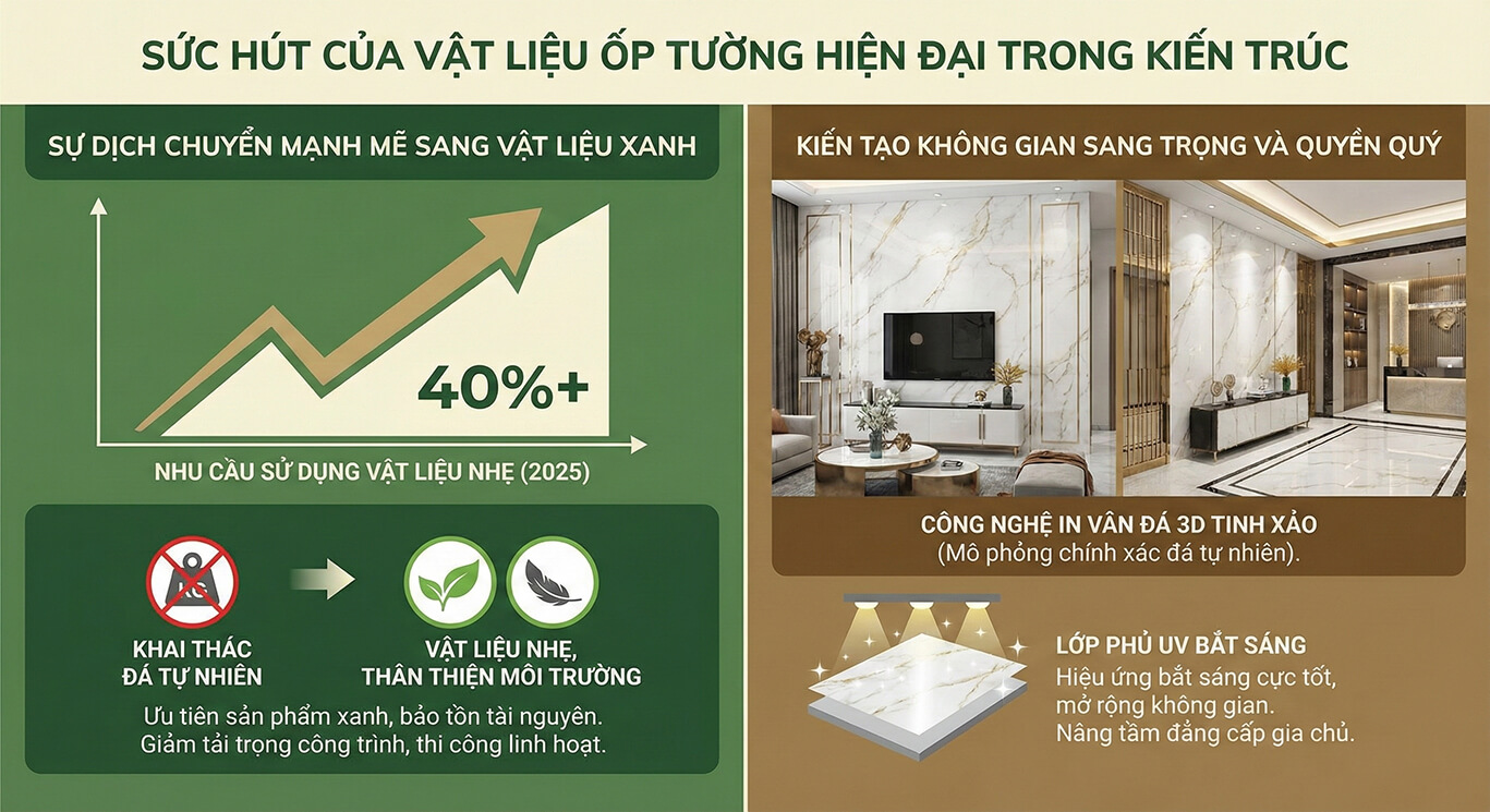 I. Sức hút của vật liệu ốp tường hiện đại trong kiến trúc