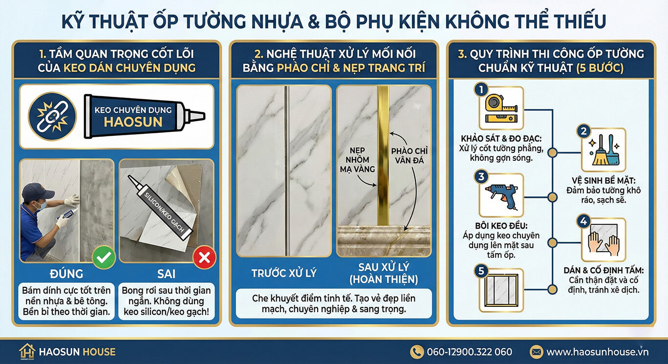 V. Kỹ thuật ốp tường nhựa và bộ phụ kiện không thể thiếu