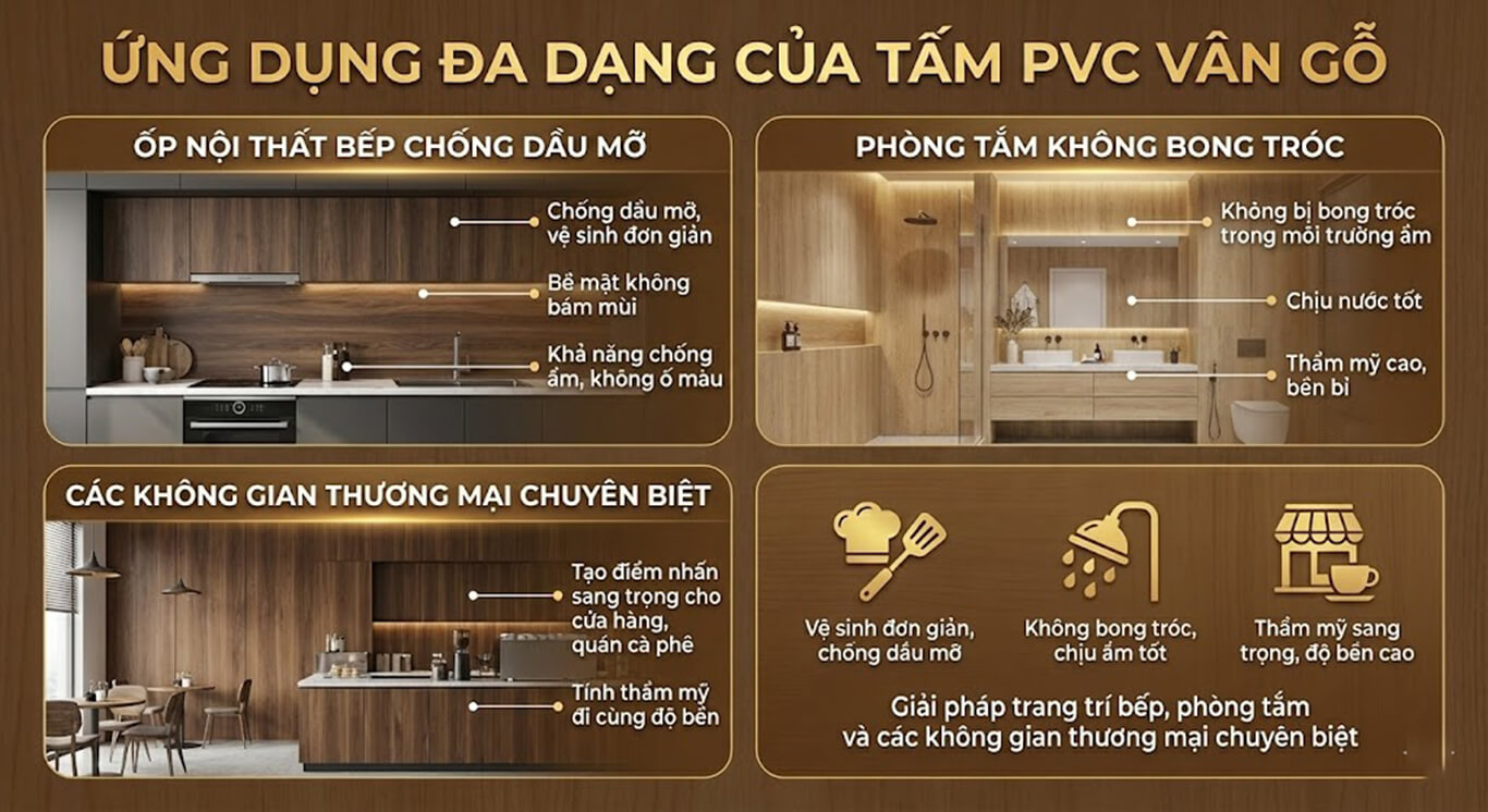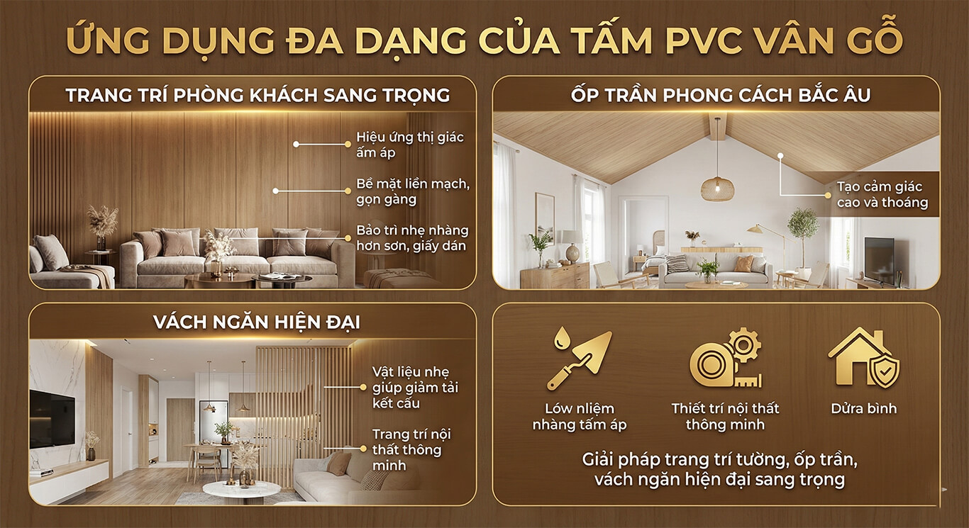 III. Ứng dụng đa dạng của tấm PVC vân gỗ trong mọi không gian